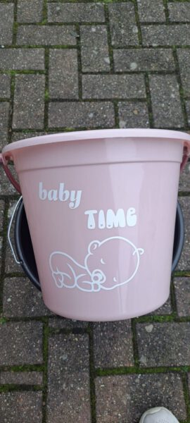 Kleine emmer roze inclusief tekst/plaatje